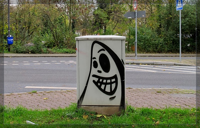 Fällt klar unter Streetart. Mit Schablone besprühte Kachel und an die Wand geklebt. |